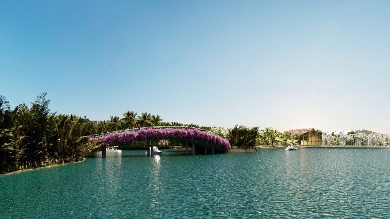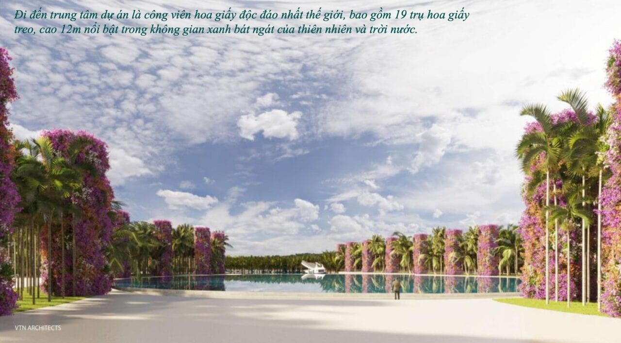 Đi đến trung tâm dự án là công viên hoa giấy độc đáo nhất thế giới, bao gồm 19 trụ hoa giấy treo, cao 12m nổi bật trong không gian xanh bát ngát của thiên nhiên và trời nước.